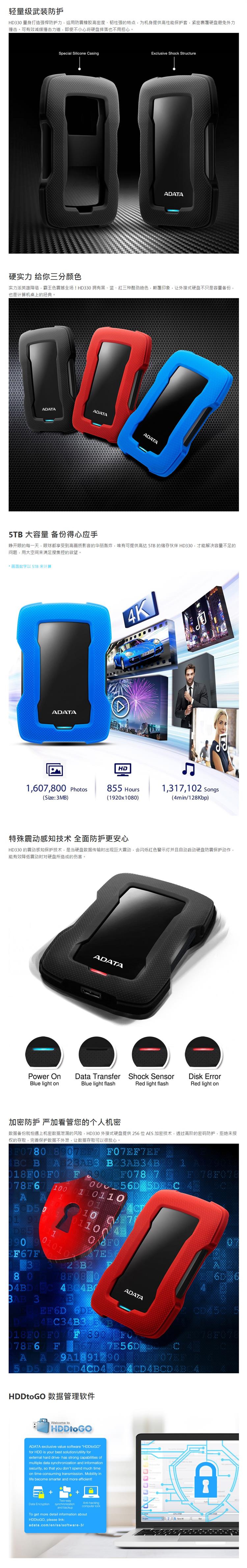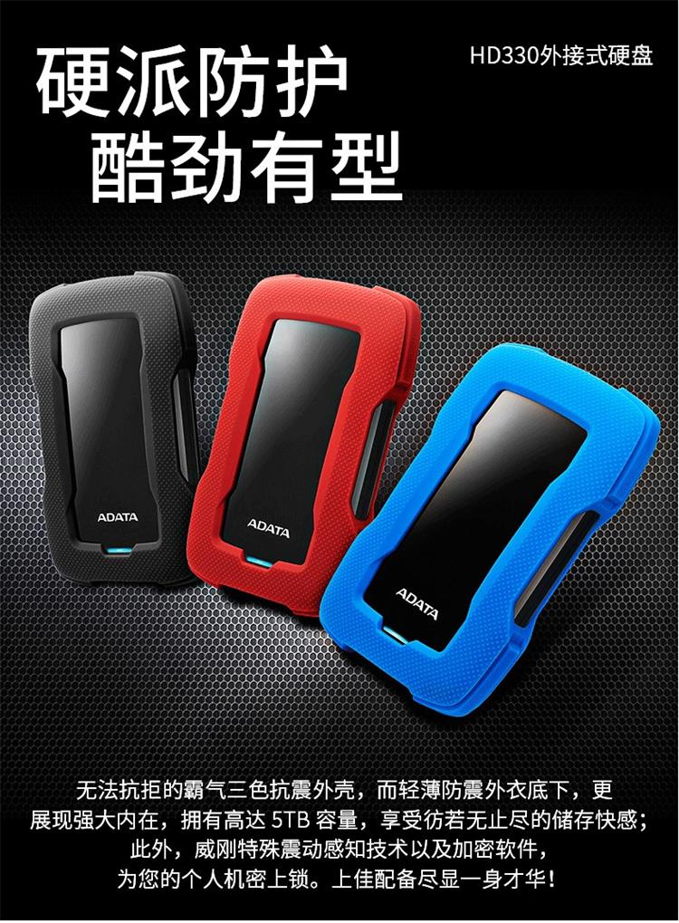 威刚(ADATA)HD330 1T 外接式移动硬盘抗震外壳高容量 蓝色