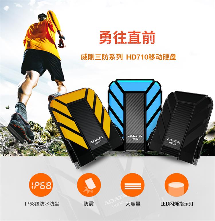 威刚(ADATA)HD710PRO USB3.0三防移动硬盘防水防尘防震户外摄影旅行 蓝色 1TB