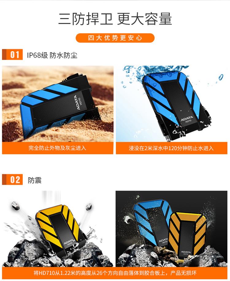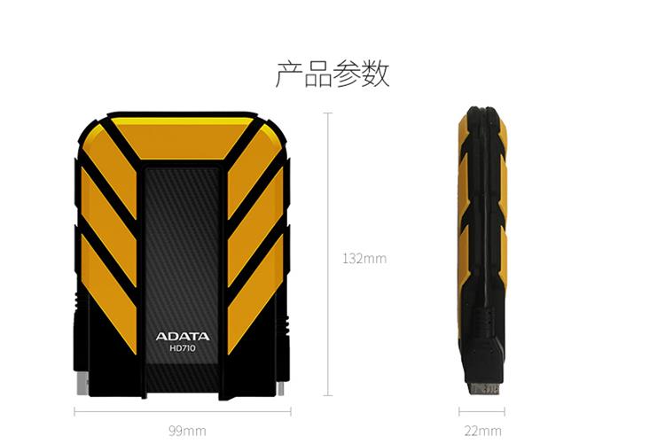 威刚(ADATA)HD710PRO USB3.0三防移动硬盘防水防尘防震户外摄影旅行 黄色 1TB