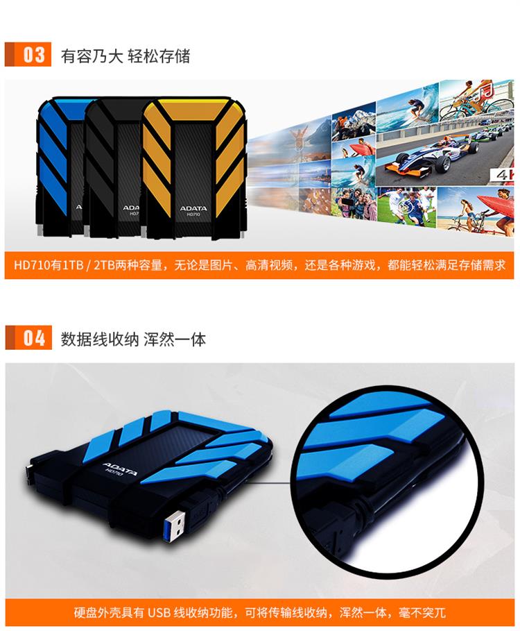 威刚(ADATA)HD710PRO USB3.0三防移动硬盘防水防尘防震户外摄影旅行 黑色 1TB