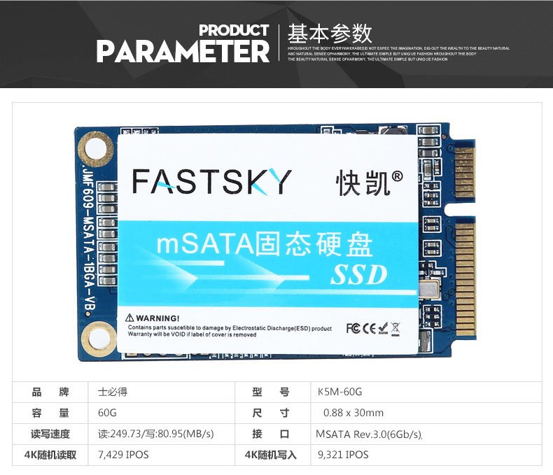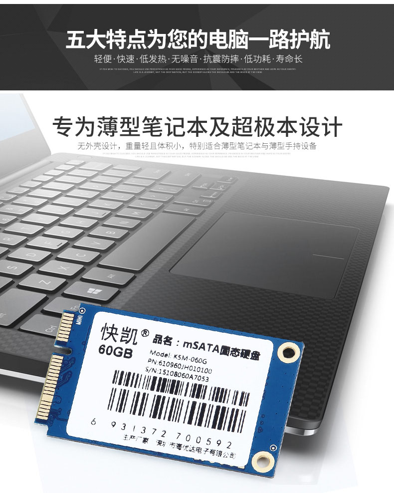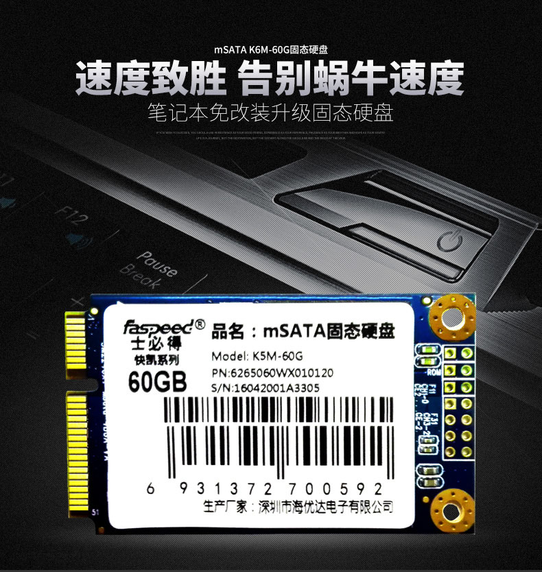 士必得 K5M-60G固态硬盘mSATA笔记本工控机 SSD