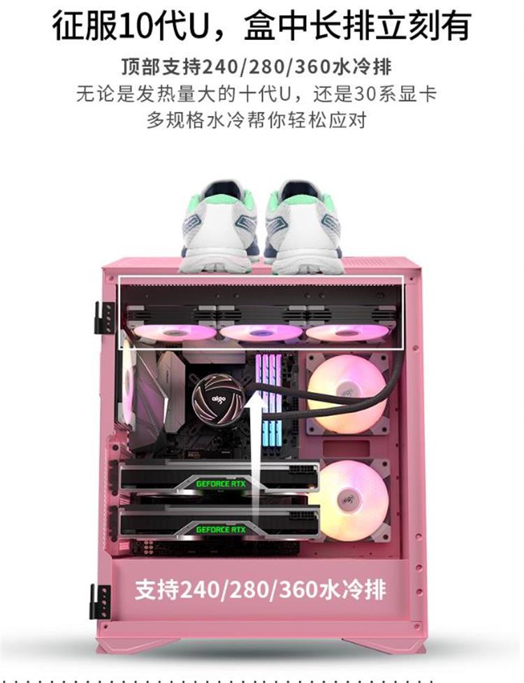 品牌: 爱国者(aigo)商品名称:爱国者爱国者(aigo)YOGO S1白色 桌面迷你电脑机箱(标配1把9CM风扇/支持ITX主板/SFX电源/兼容长显卡/240水冷) 商品毛重:5.6kg商品产地:中国大陆支持水冷:240冷排,120冷排机箱重量:<5kg体型分类:MINI机箱色调元素:粉色RGB光控:支持RGB光控支持主板:MINI-ITX(迷你型)