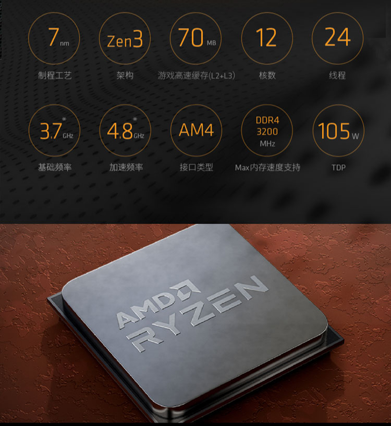 AMD 锐龙9 5900X 处理器(r9)7nm 12核24线程 3.7GHz 105W AM4接口 盒装CPU