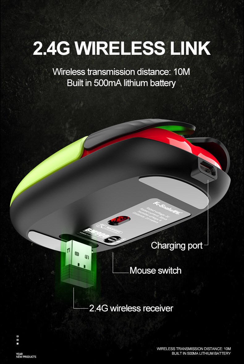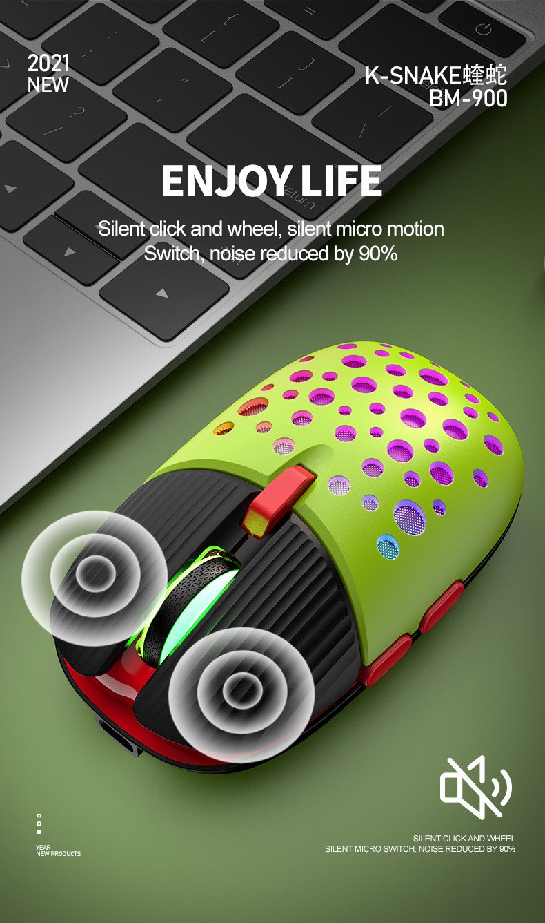 蝰蛇BM900 粉色 无线鼠标可充电发光创意办公商务游戏鼠标