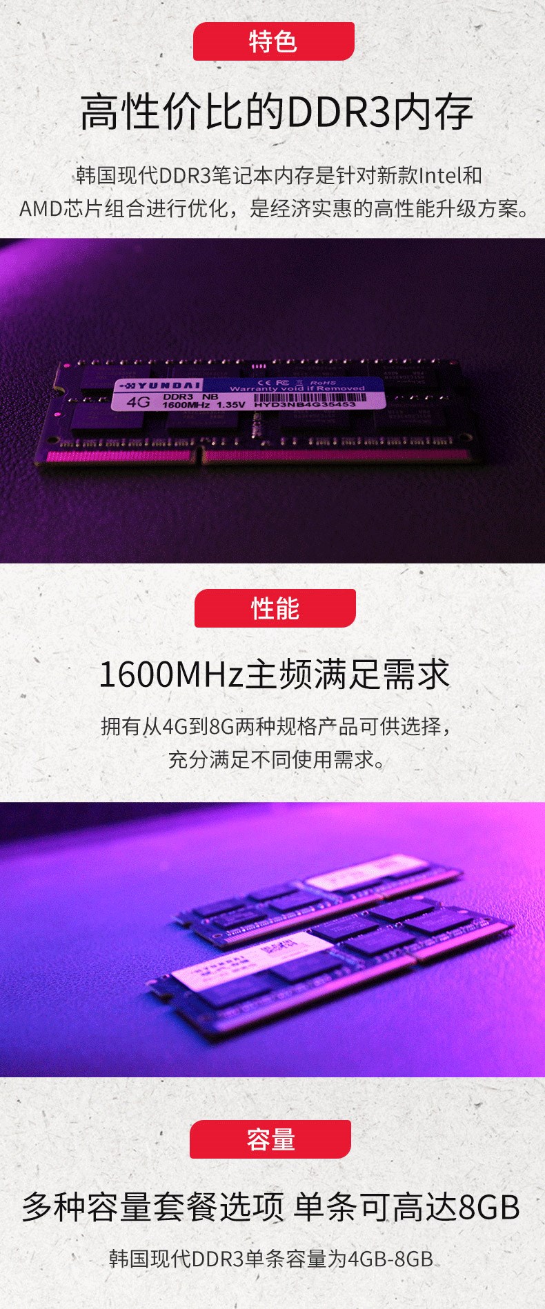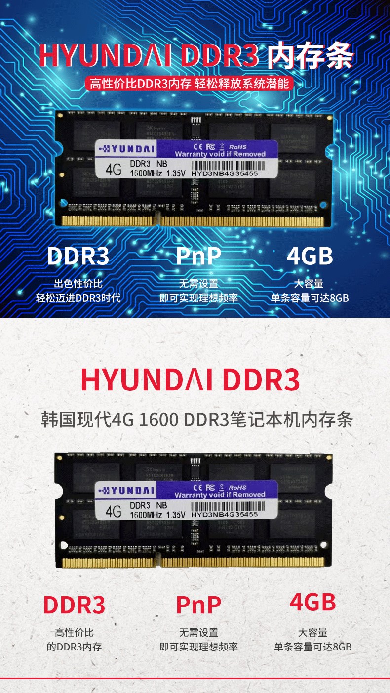 韩国现代 4G 1600 DDR3 笔记本内存条