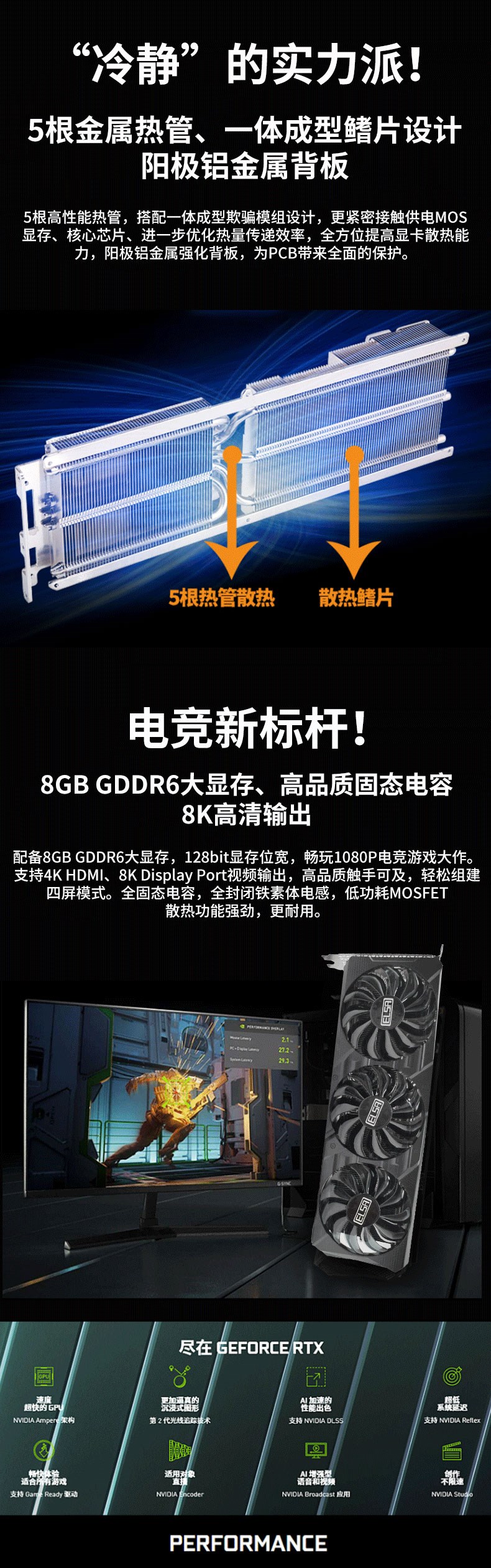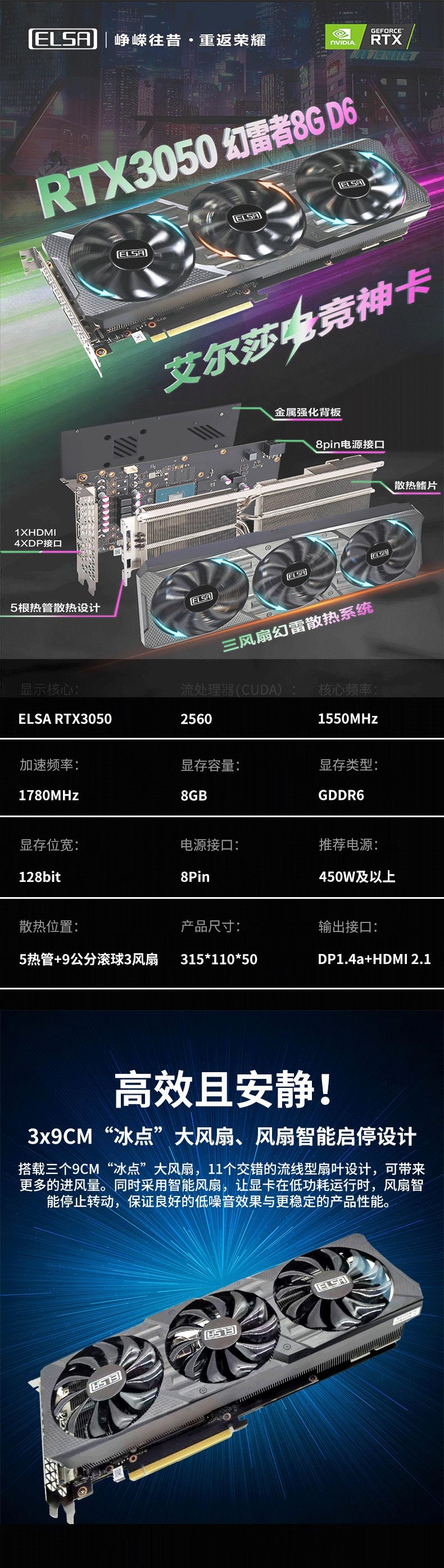 艾尔莎 RTX3050 幻雷者 8G D6 HDMI+DP*3 (三风扇)