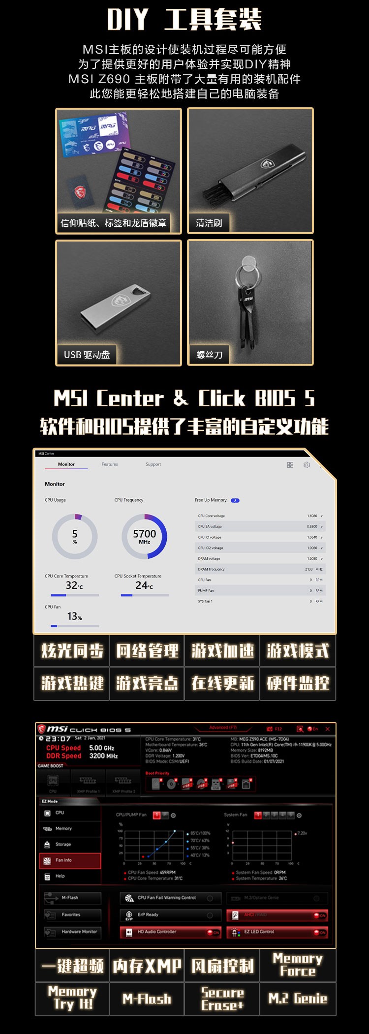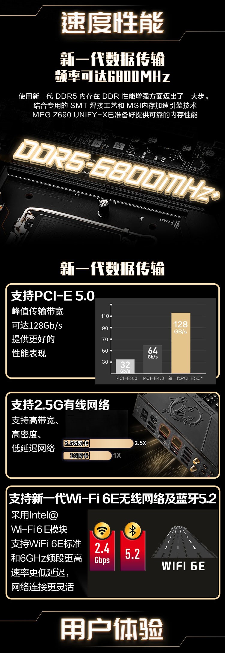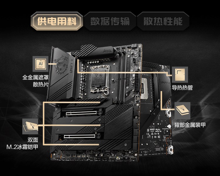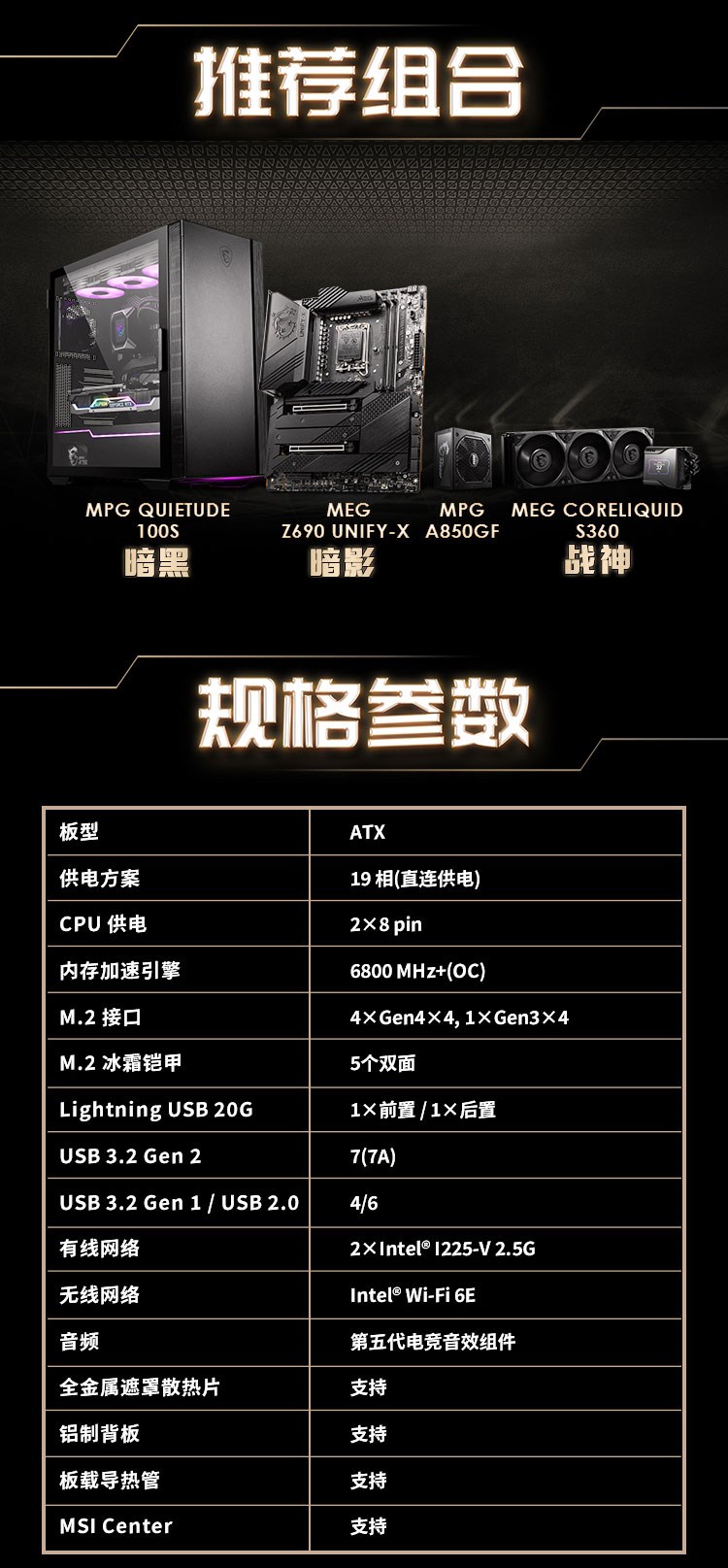 微星(MSI)MEG Z690 UNIFY-X DDR5 暗影电脑主板 支持WIFI6E CPU12700KF/12900KF